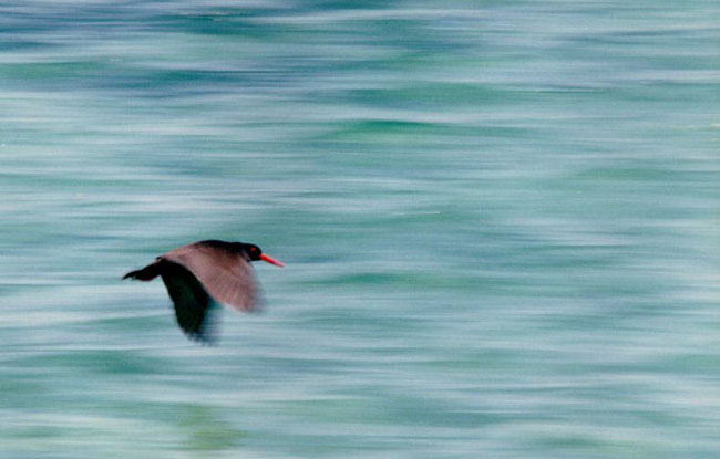 Description: The photograph was taken on Little Dog Island, a small private island South of Flinders Island in the Bass Strait, between the Australian mainland and Tasmania. Panning technique used with slow camera shutter speed of 1/30 second. Are you interested in more information on the Oyster Catcher?