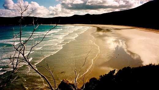 There were some huge sand dunes near our camp site. So after setting up camp some of us crazed Scouts put on our bathers and set off for the sand dunes and the beach. Alissia and I found our way up to the sand dunes first and about 5 minutes later Laura and Maddy (Madeleine) turned up. About 20 minutes later the boys eventually found their way. Now that says something! The sand dunes were real fun even though we landed on one another rolling down the dunes and had a nice 'snack' of sand. After we got sick of the sand dunes 6 of us headed off to the beach for a swim. It was absolutely freezing! But after all it was the middle of winter. After a quick dip we went back to camp and sat around the 'Trangias' and candles to cook and eat our dinner. After dinner we sat around our pretend Trangia burner 'camp fire' and chatted our night away. Today was especially fun but I was pretty happy we're getting back to civilization tomorrow, although you do get to see some magnificent views out here. Today we walked a total of 6 Km.